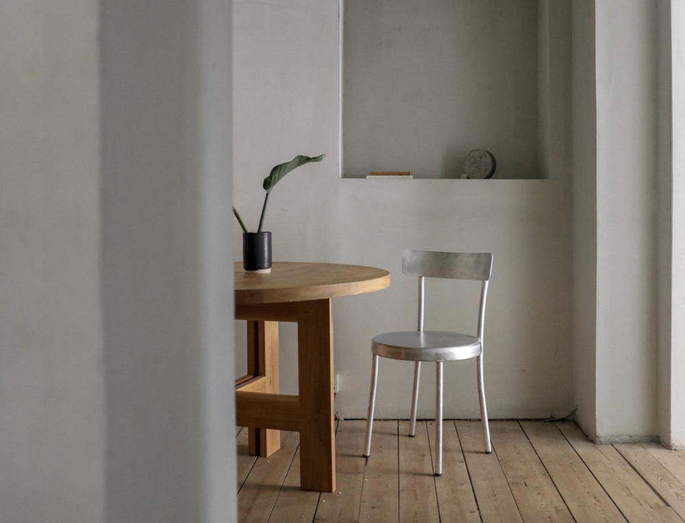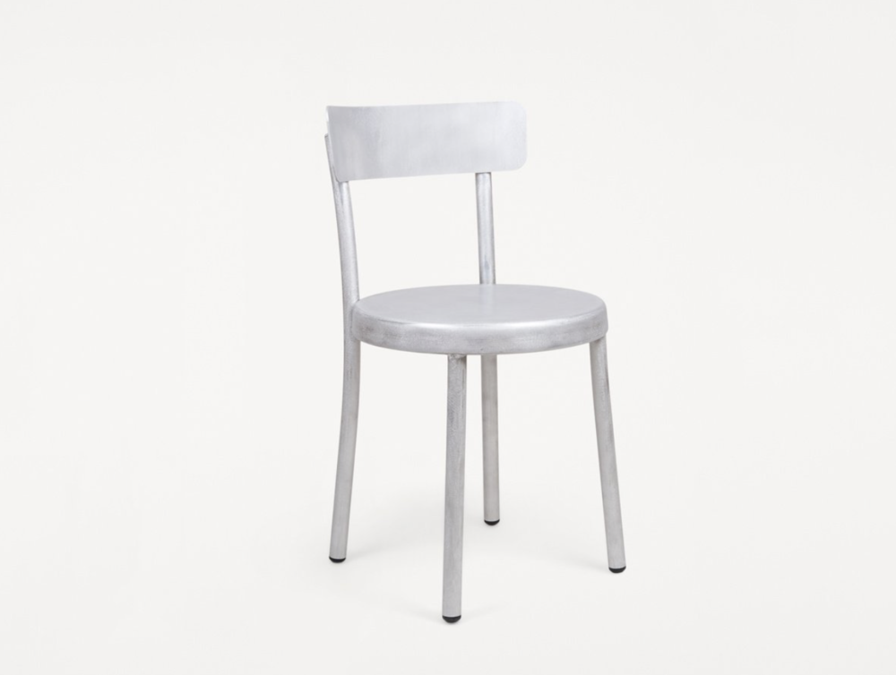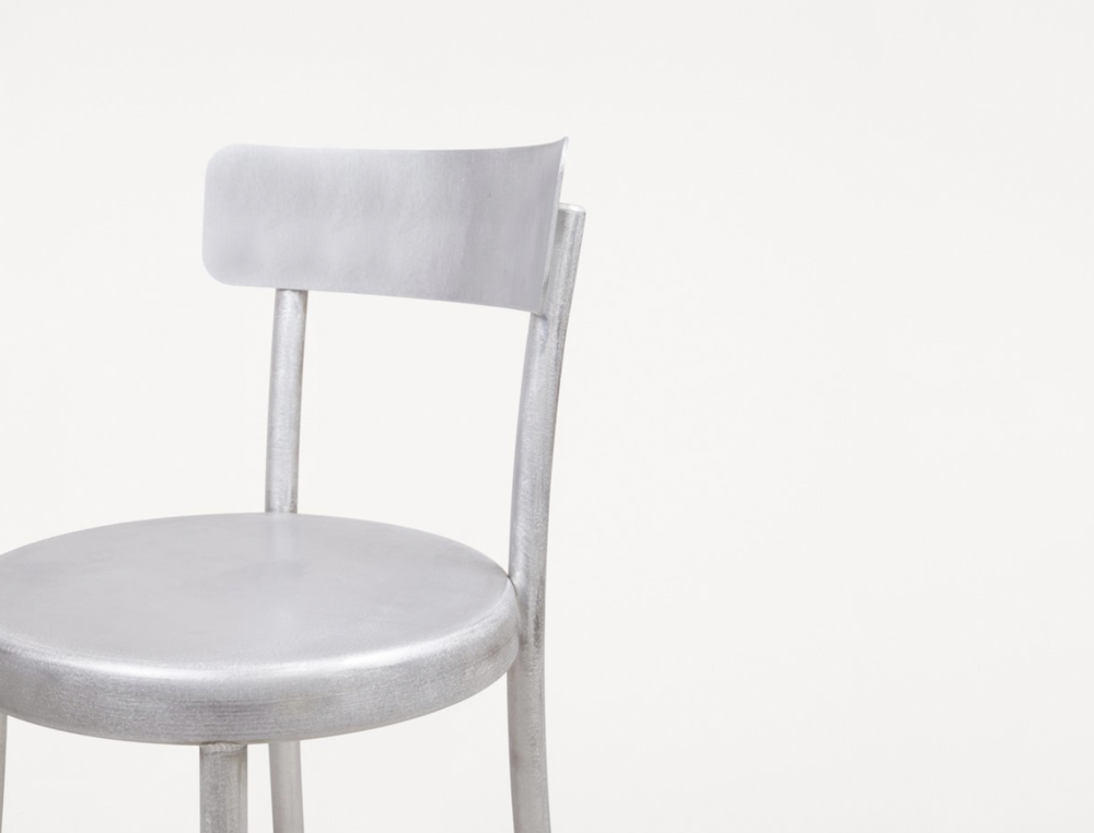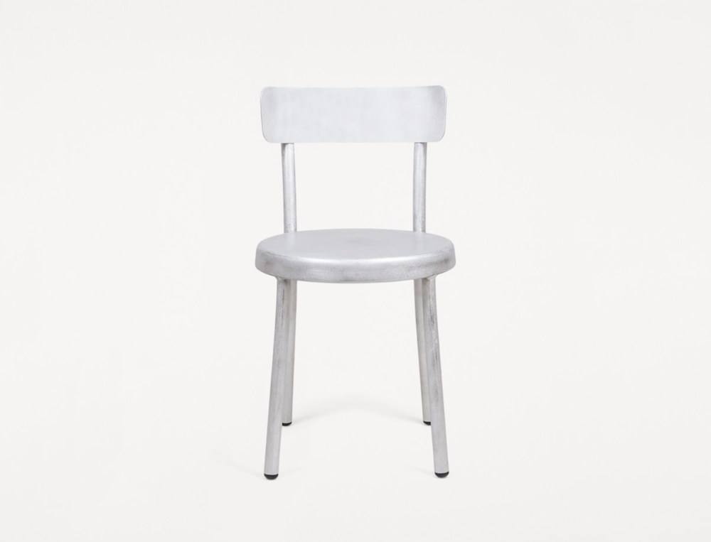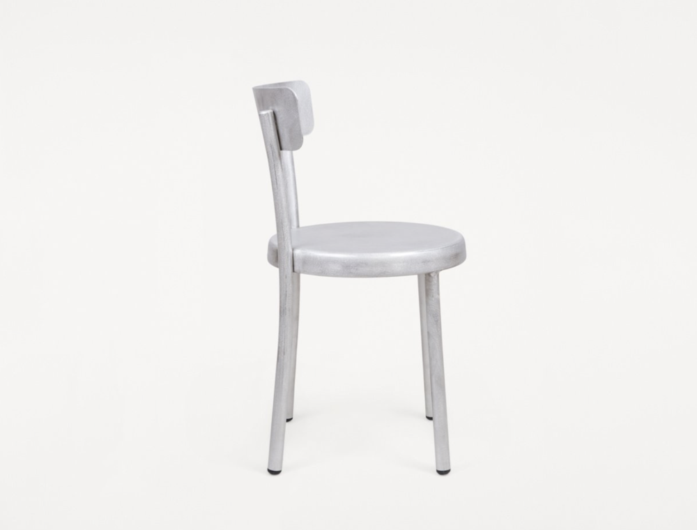 Inspired by the local taverns around Portugal, called “tascas”, the Tasca Chair is a lightweight chair for both indoor and outdoor spaces. Made in natural aluminum with a distinctive finish done by hand, Tasca's rounded form encases the user.