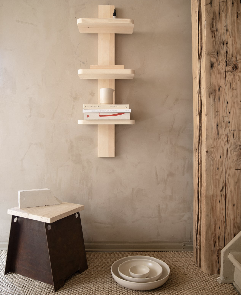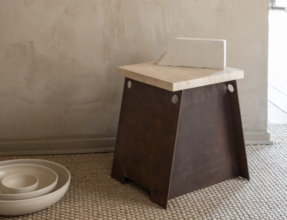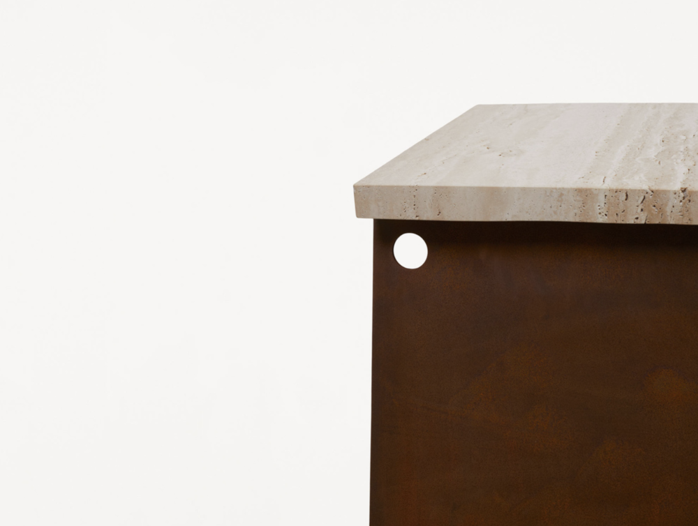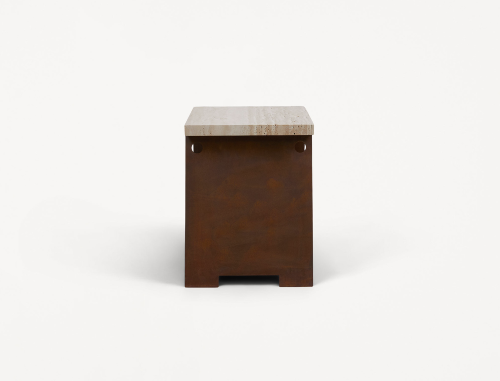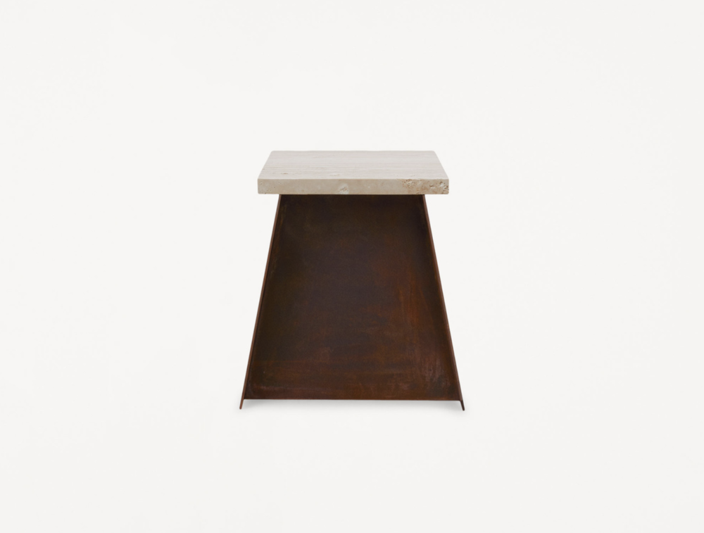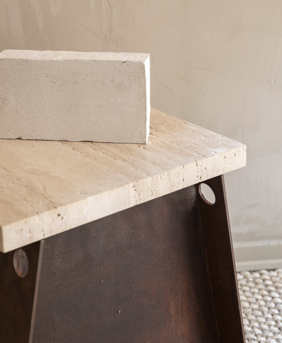 64 Plinth | Travertine / Corten Steel