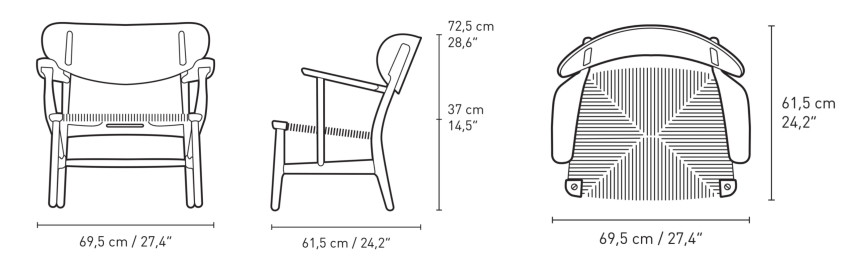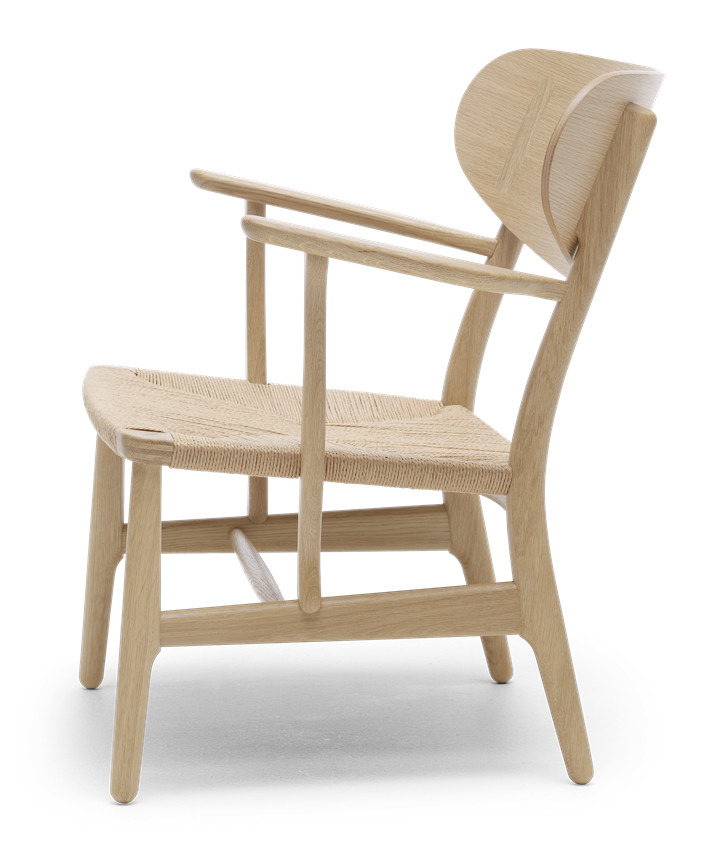 The CH22 lounge chair, manufactured from 1950, was part of Hans J. Wegner’s debut collection for Carl Hansen & Son. The chairs were all made of wood with seats in paper cord instead of upholstery. They are among the designer’s most well-known and sought-after creations today.
