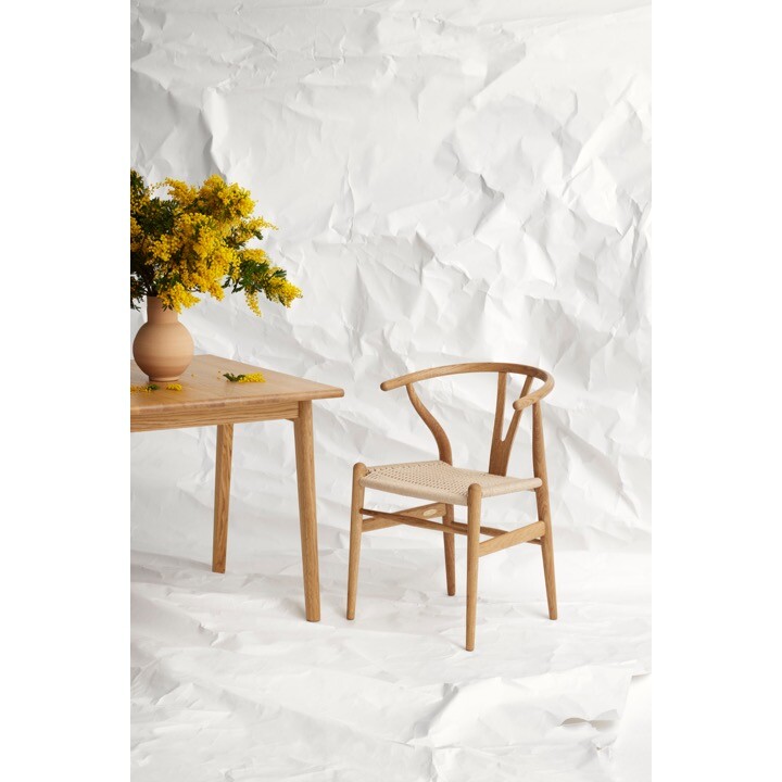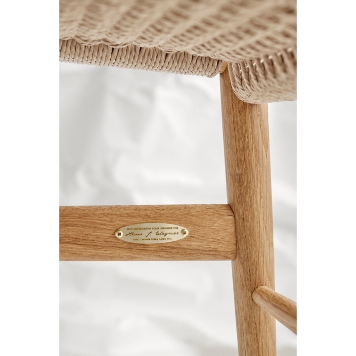 Carl Hansen & Søn once again marks the birthday of Hans J. Wegner on April 2nd with a special edition of the iconic CH24 Wishbone Chair. This year we present the birthday edition in a natural combination of FSCTM-certified oak with double woven paper cord. The inspiration for this special edition arises from 'THE LAB', the Danish-based apprentice workshop of Carl Hansen & Søn, where 20 young aspiring cabinetmakers are trained and educated every year. The apprentices were commissioned to come up with a design idea for a new seat for the CH24 Wishbone Chair. The best proposal was tested, approved by Hans J. Wegners Tegnestue, and further developed by skilled weave masters at Carl Hansen & Søn. The CH24 Birthday Edition 2023 features an exclusive small brass plate engraved with Hans J. Wegner's signature and date of birth discreetly placed on the inside of the frame. It also comes with a certificate of authenticity.