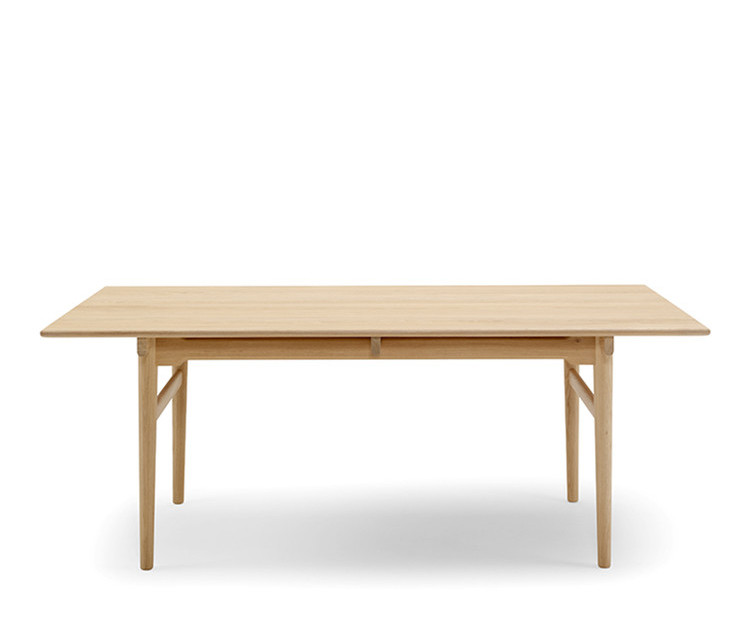 CH327 is a solid wood dining table with softened edges and rounded legs that become narrower towards the floor.