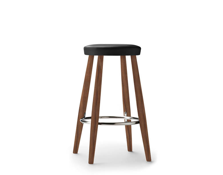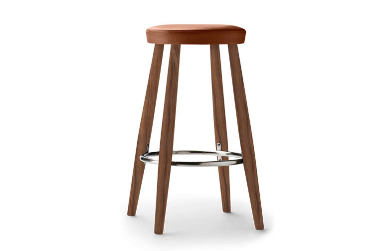 With its slightly angled legs and round padded seat, the stool creates an inviting atmosphere for a relaxing time.