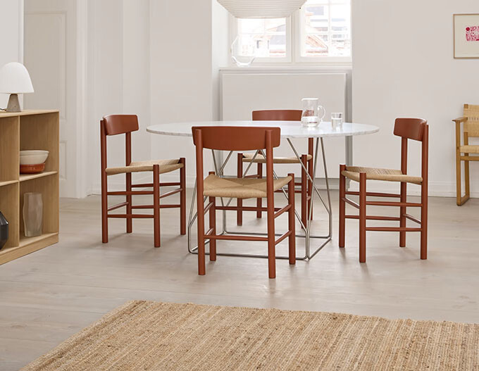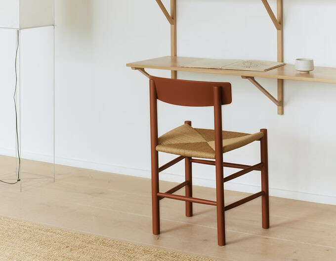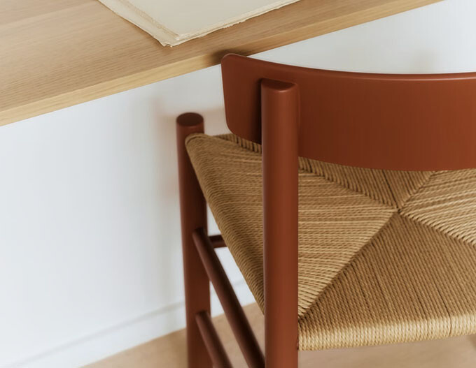 Inspired by Japanese interiors and Danish avant-garde art in Mogensen’s home, the popular wooden chair, which has just been awarded the Nordic Swan Ecolabel, is launched in dark blue and vintage red – a colour that played a significant role in the designer’s universe throughout his lifetime.