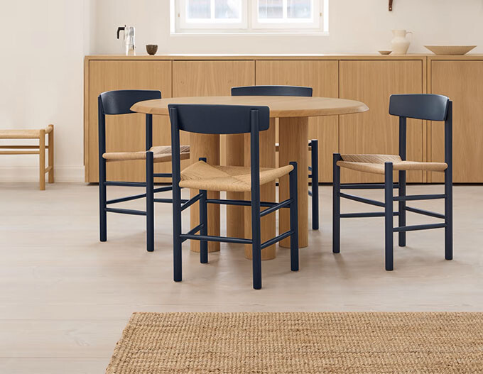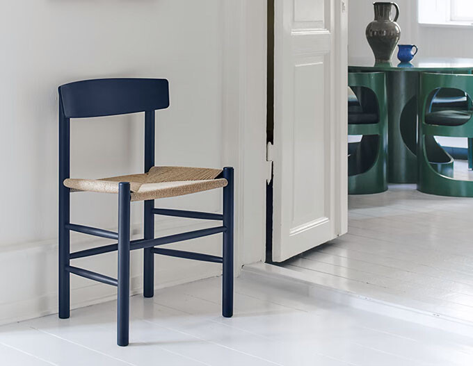 Inspired by Japanese interiors and Danish avant-garde art in Mogensen’s home, the popular wooden chair, which has just been awarded the Nordic Swan Ecolabel, is launched in dark blue and vintage red – a colour that played a significant role in the designer’s universe throughout his lifetime.