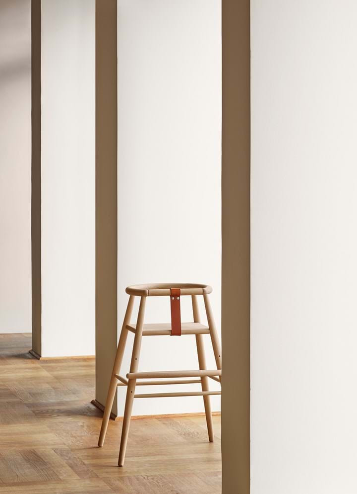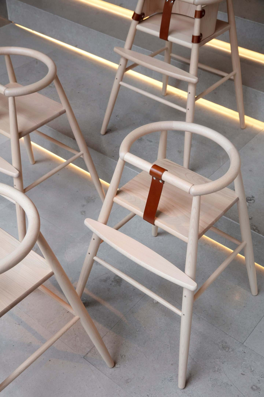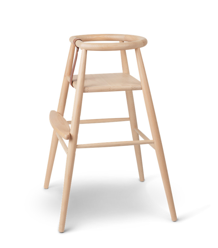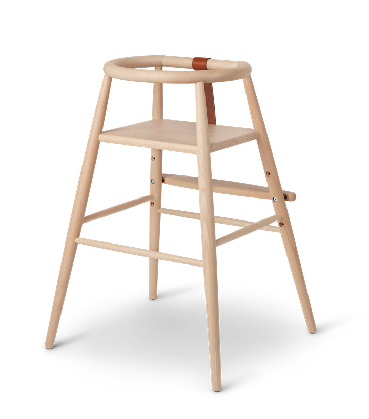 Nanna Ditzel’s ND54 Dining Chair is a beautiful and enduring piece of design, adaptable to the needs of growing children. Minimalist and sturdy, the FSC™-certified beech wood chair can be used by children up to 15 kg, providing a safe sitting place for them while dining at the table. Finished with matt lacquer for easy cleaning, it is also fitted with saddle leather straps to secure baby in place, as well as an optional back rest for additional comfort.