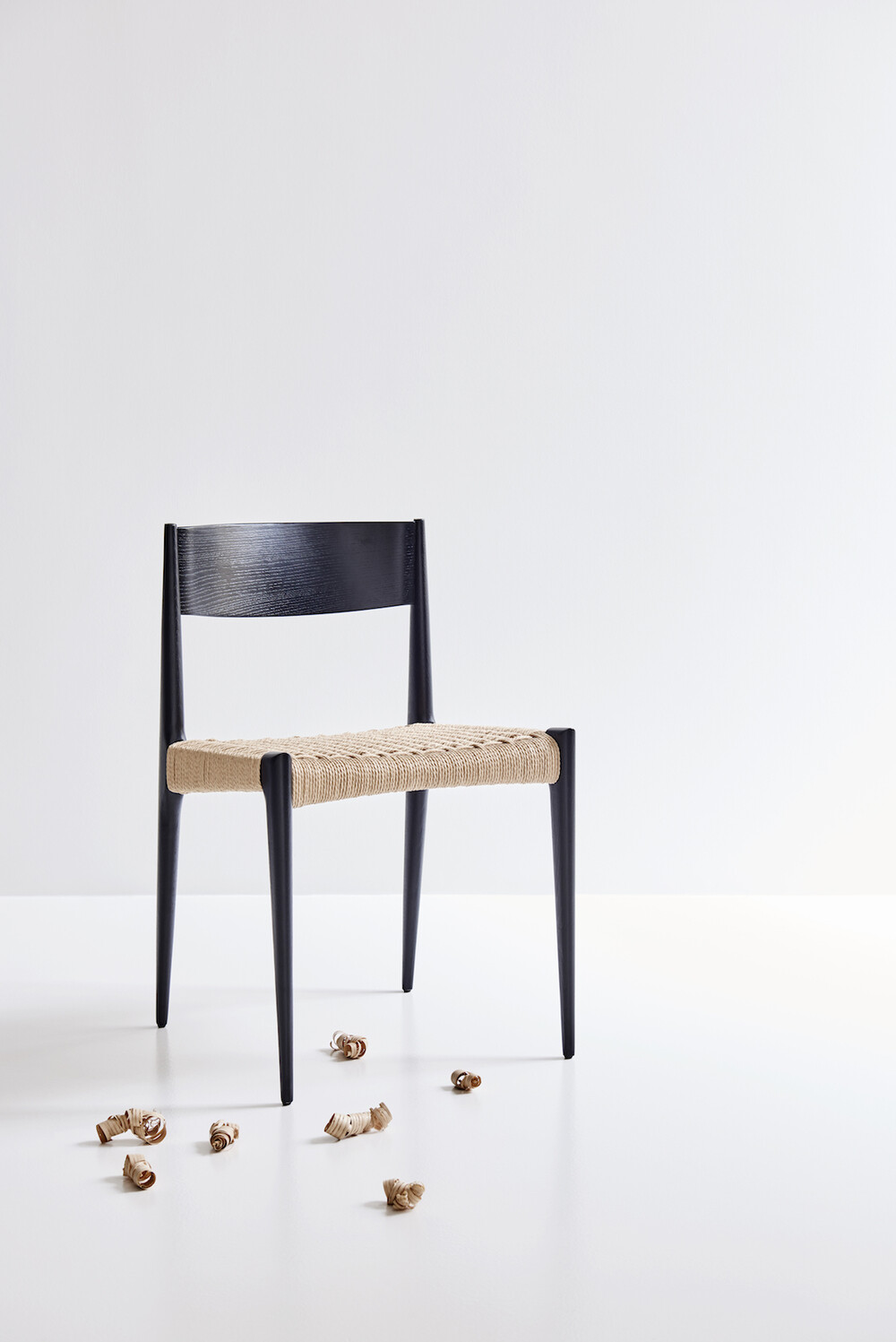 He wanted to create a chair in the spirit of the time, inspired by other design chairs of the fifties, but lighter and more "petite", both in physical weight and in design expression. The chair was developed on a "less is more" concept, with focus on the least possible material consumption, still maintaining a high level of details and excellent comfort.