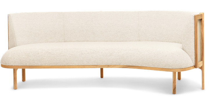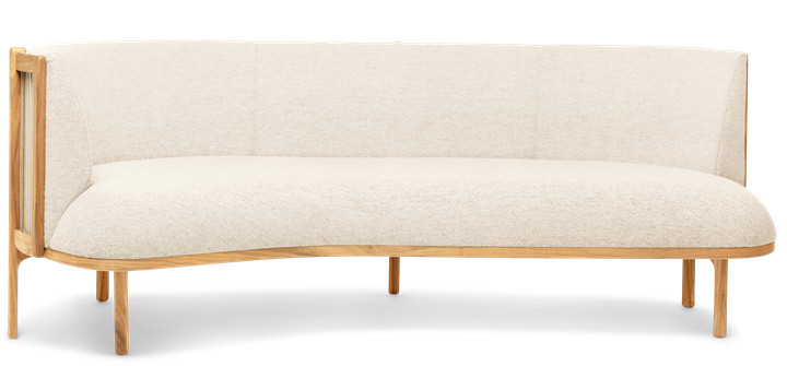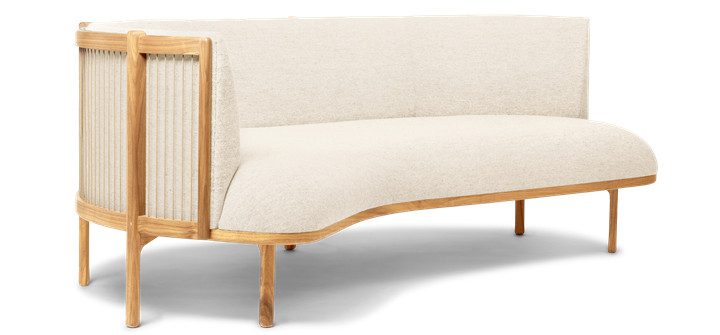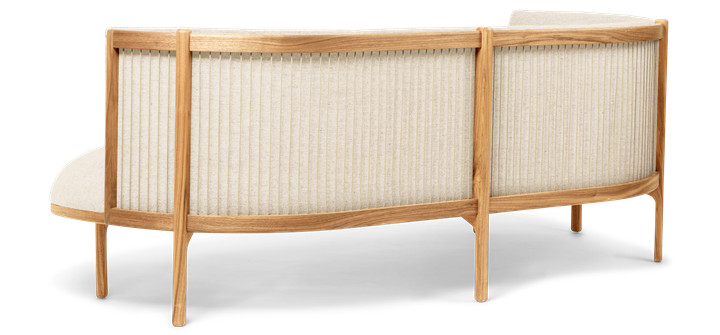 The Sideways Sofa from Rikke Frost combines classic materials – wood, paper cord, and high-quality upholstery textile