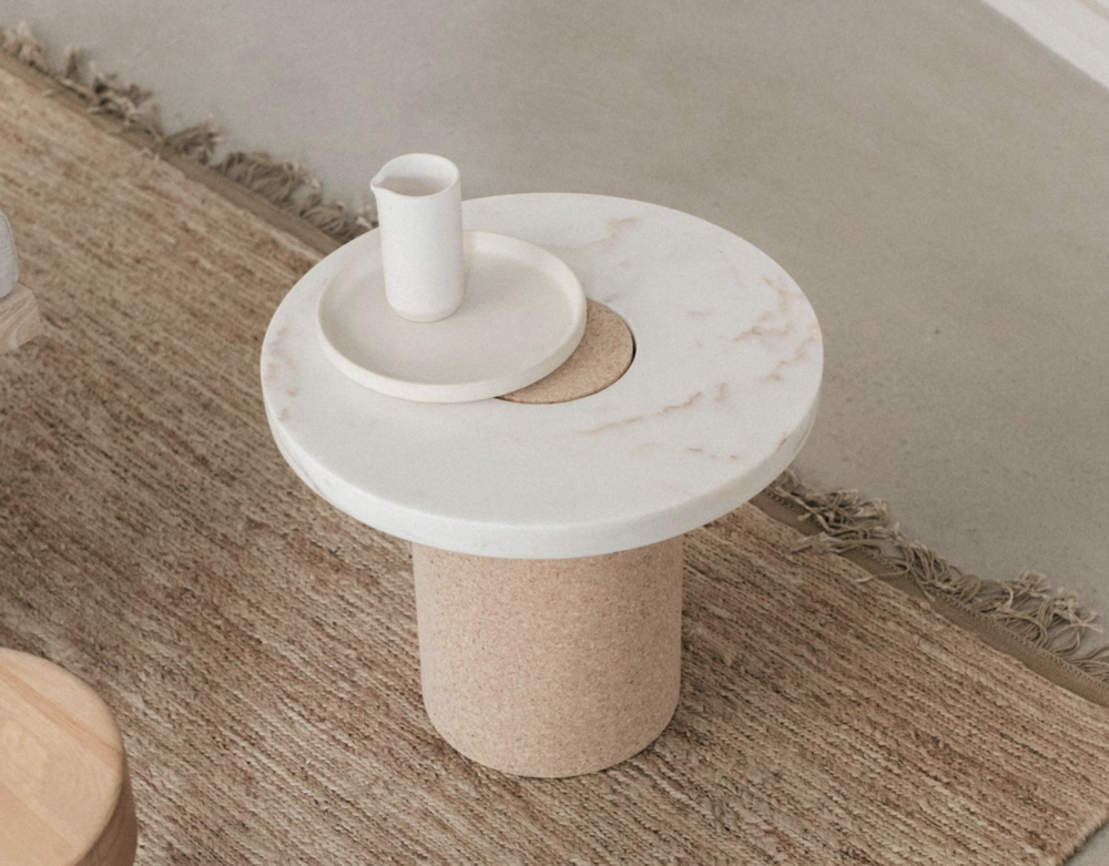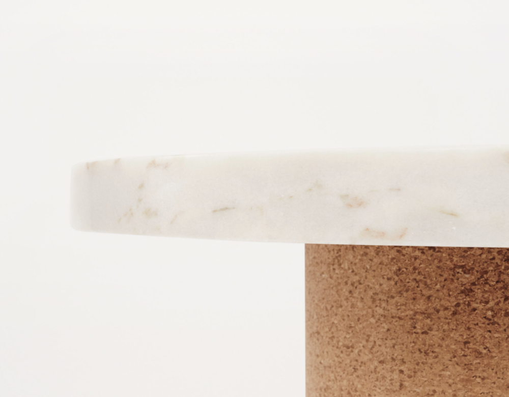 Suitable as a coffee table or side table where the contrast between the soft warm cork,