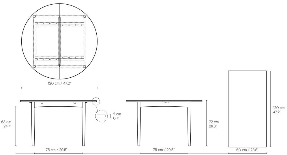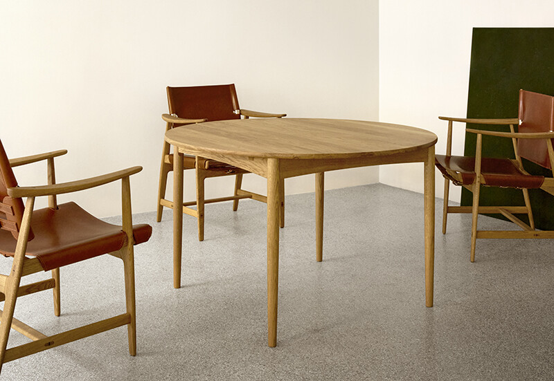 Børge Mogensen designed the BM0121 Dining Table in 1952 as a solution for small living environments to seat 4-6 people. The first extendable circular table by Mogensen in the Carl Hansen & Søn collection, the table is crafted in FSC-certified solid oak and displays a particularly light expression owing to a 19mmm thick tabletop, slightly tapered legs and an upwardly curving apron. Insert leaves are available in oak or MDF.
