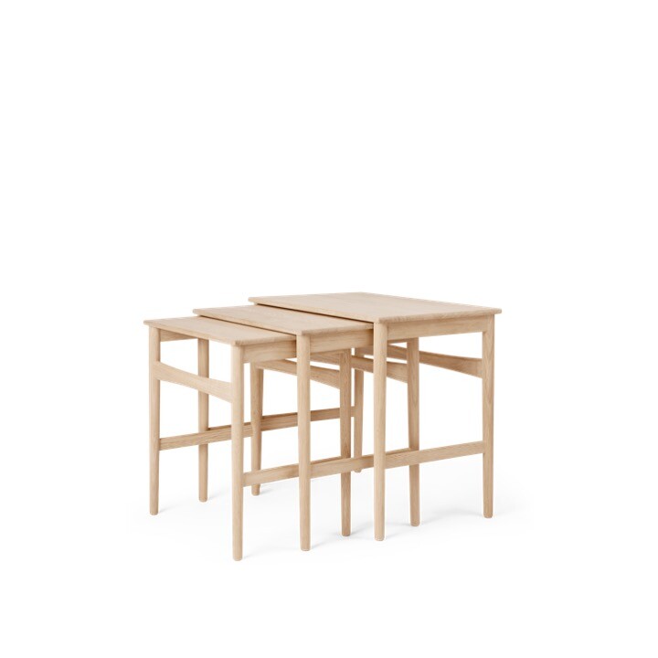 Hans J. Wegner’s iconic Nesting Tables were first launched in 1952. Due to their lightness, space-optimised design and classic Wegner minimalism, the side tables go well with any interior. The Nesting Tables consist of three different-sized nesting tables that can be used individually or combined. Available in FSC™-certified oak or walnut, or in an oak/walnut mix.