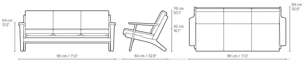 Elegant and relaxed upholstery enhances a straightforward expression in Hans J. Wegner’s CH293 Sofa. Designed in 1962 as part of the wider CH290 Series, the CH293 Sofa demonstrates a distinctive Wegner identity, combining rigorous and stringent carpentry details with soft and casual upholstery. The three-seater sofa features three separate seat and back cushions supported in an elegant hand-finished FSC™-certified solid oak frame. Wegner made a conscious decision not to hide the essential details of the frame, which are accentuated by relaxed upholstery. A visible slatted backrest, dynamically angled rear legs, and wide armrests demonstrate familiar Weger hallmarks, while upholstered cushions in removable fabric or leather lend effortless versatility to this mid-century modern design.
