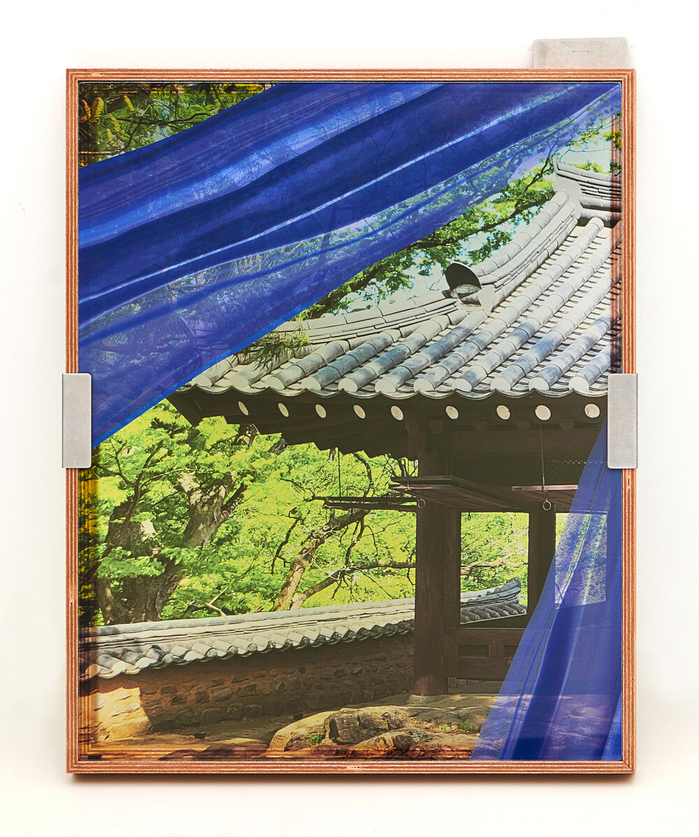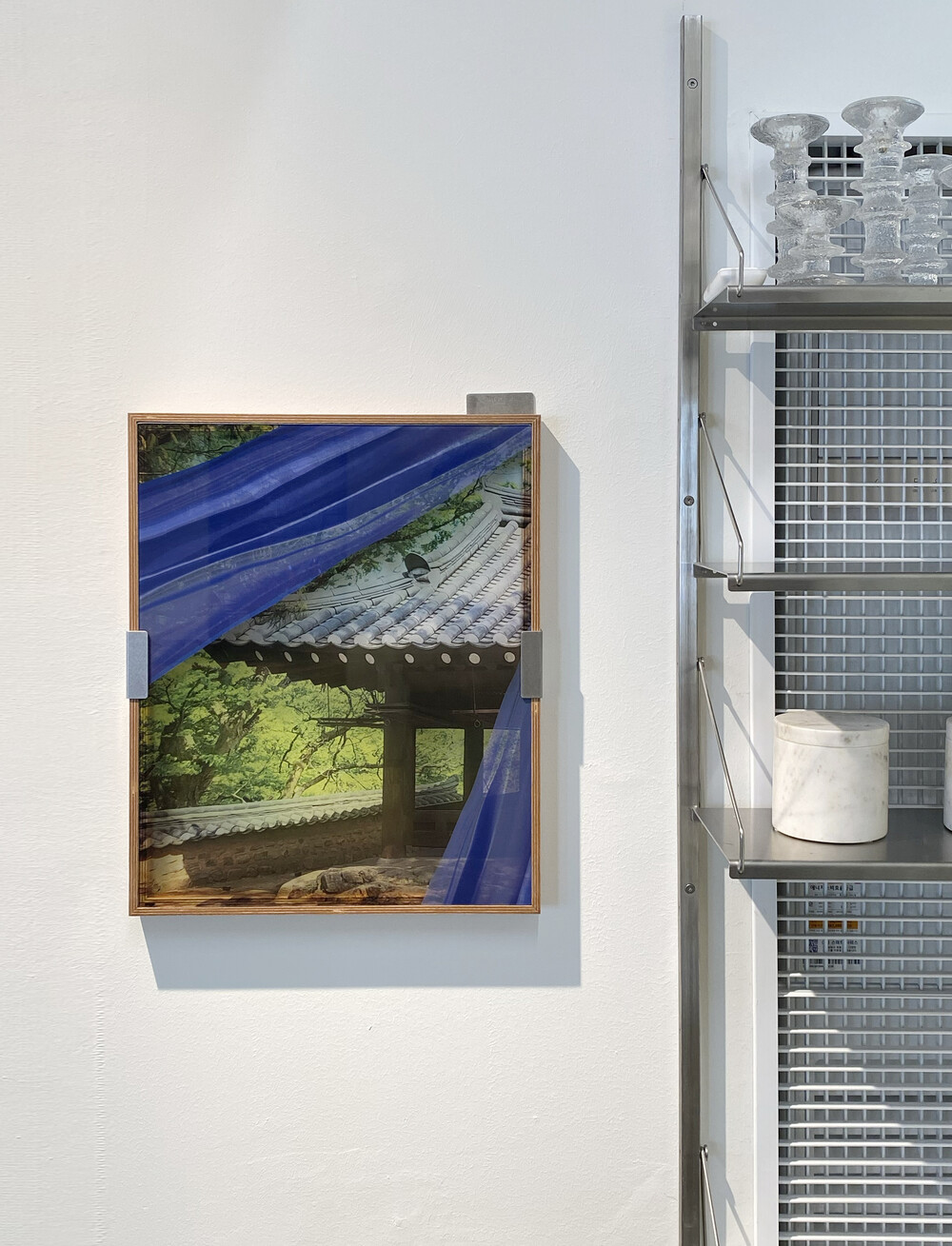 밝은 바깥과 대조되어 밤의 빛을 지닌 공간. 정적인 시간을 그려 내었다.