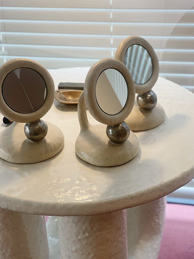흙으로 작업하다 보면 변수가 많다. 작업 과정에서 생기는 갈라짐이나 형태 변형, 유약의 두께로 인한 색감의 차이 등 의도와 상관없는 결과들이 종종 생긴다. 그리고 계획을 벗어난 결과물들은 새로운 형태를 만든다. 특정한 형태보다는 만드는 과정에서의 자연스러운 형태를 받아들이고, 성형할 때 생기는 손자국을 그대로 작품에 노출시킨다. 이는 나와 도자 매체의 교감을 드러내고자 하는 것이며 나아가 단단한 기물의 표면과 대비되는 따뜻하고 일상적인 느낌을 작품 전체에서 느끼게 하고자 함이다. 또한 내 작품은 작가의 의도가 무엇인지 어떠한 용도로 쓰이는지 각자의 관점에서 다양하게 생각하고 해석하기를 바란다. 누구에게는 오브제로, 또 다른 누군가에게는 가구로 보여질 수도 있을 것이다. 내가 흙과 교감하는 것처럼 관람자 또한 작품과 소통하고 감각하기를 바란다.