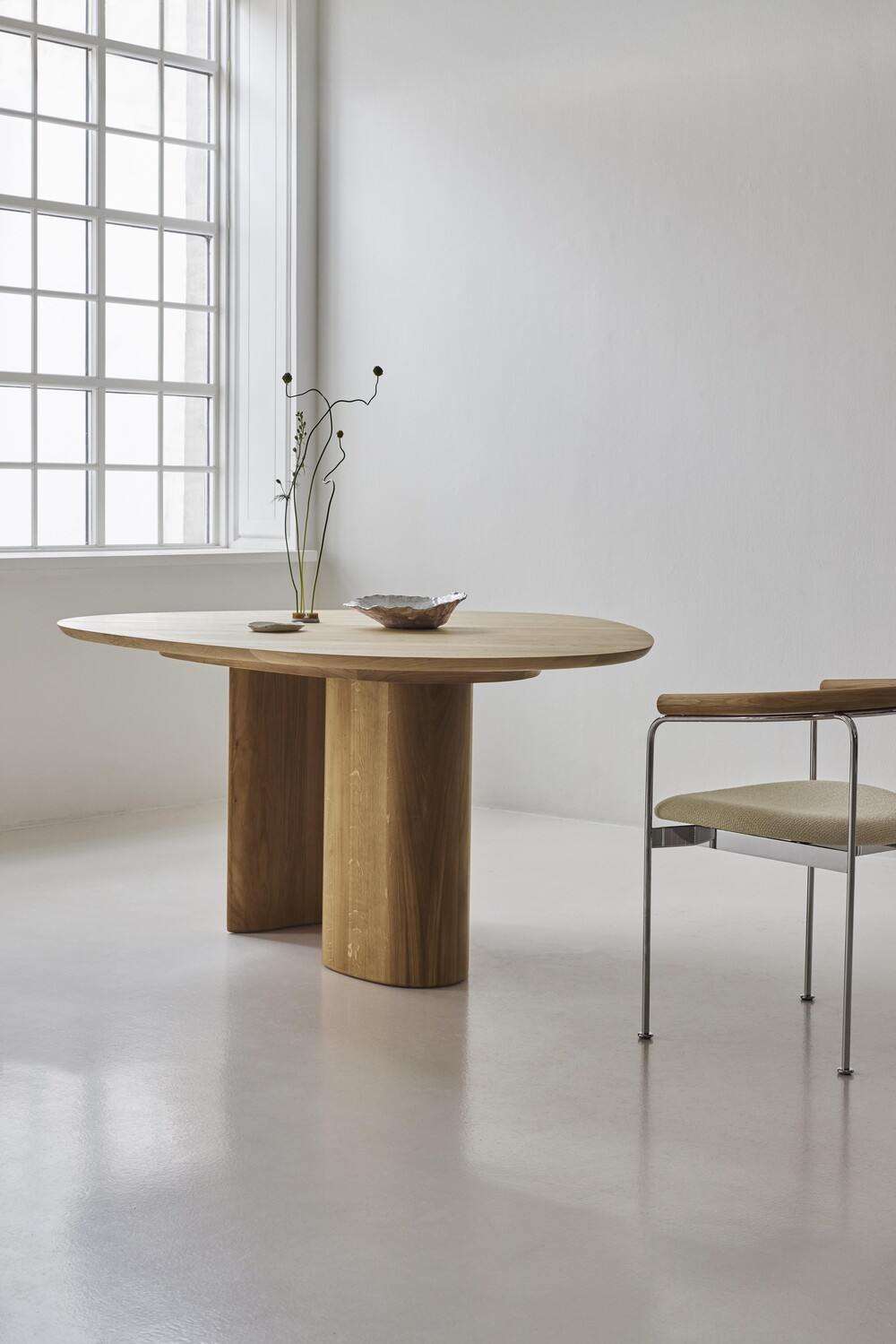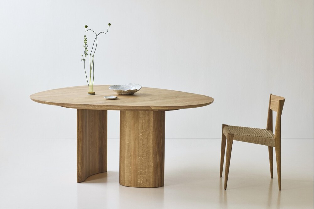 The Tangent Table is created for dk3 by Danish architect and designer Anne Boysen. Inspired by organic forms and sculptural geometry, she has created a modern dining table that combines aesthetics and function in perfect harmony. The table comes in a rectangular and a round version, each interpreting the distinct and original design characterized by its asymmetrical tabletop and unique base. The design idea for the Tangent Table Round began with Anne Boysen’s wish to create a table, where everyone around the table can participate equally in the gathering. Other round tables with extension leaves can create too much distance, but the Tangent Table Round is made with closeness and socialization in mind.