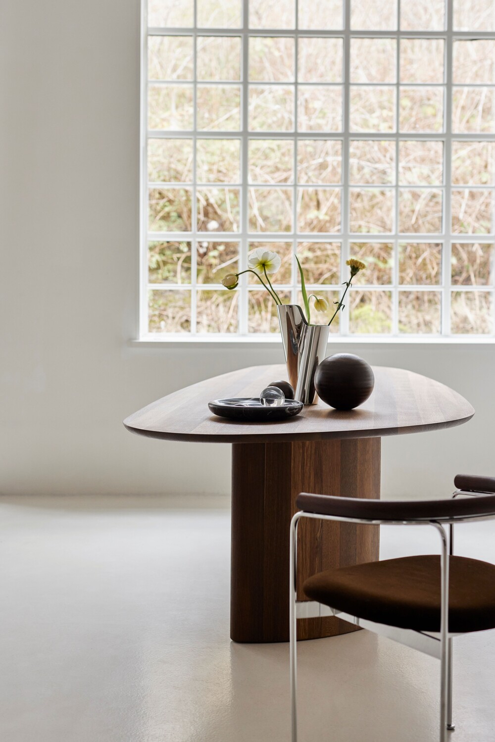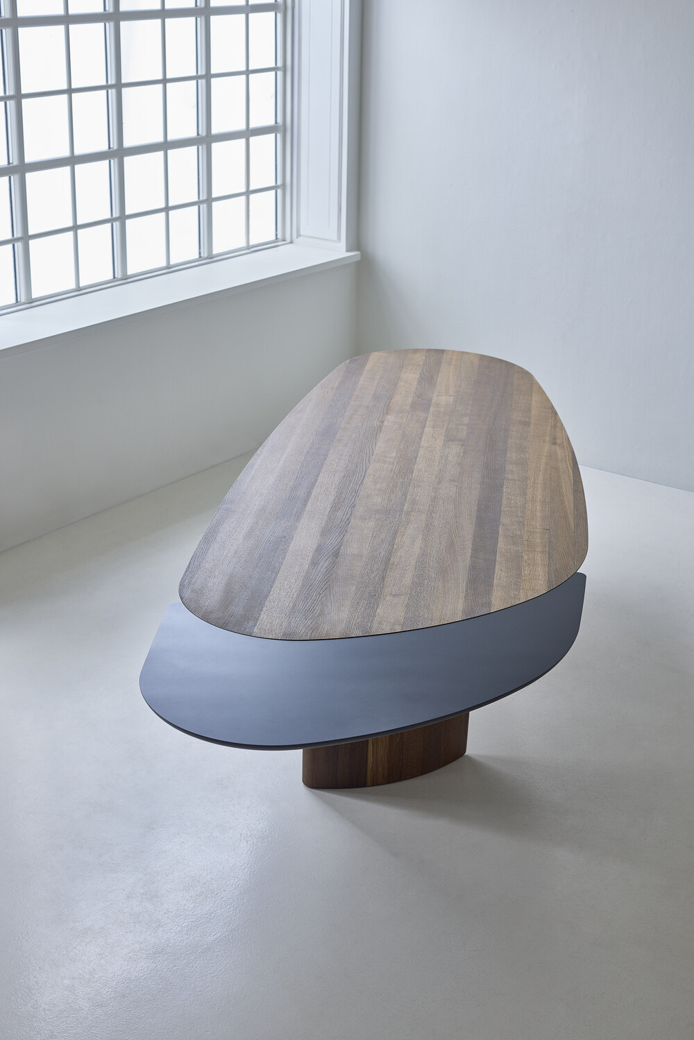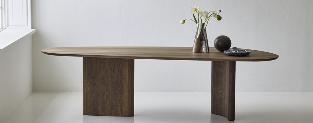 The Tangent Table is created for dk3 by Danish architect and designer Anne Boysen. The table balances form, function and craftsmanship in a design that appears modern and timeless at the same time. It comes in a rectangular and a round version, each interpreting the distinct and original design characterized by its unique base and asymmetrical tabletop.