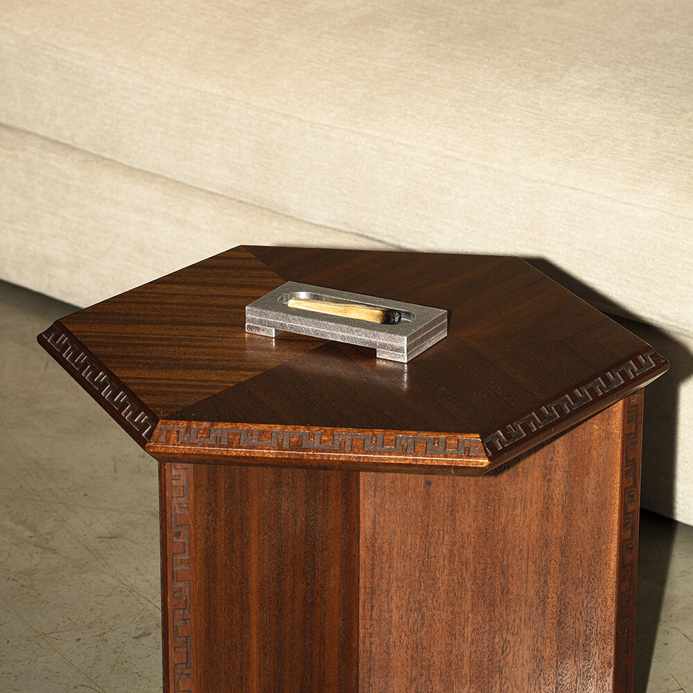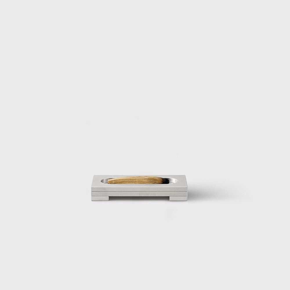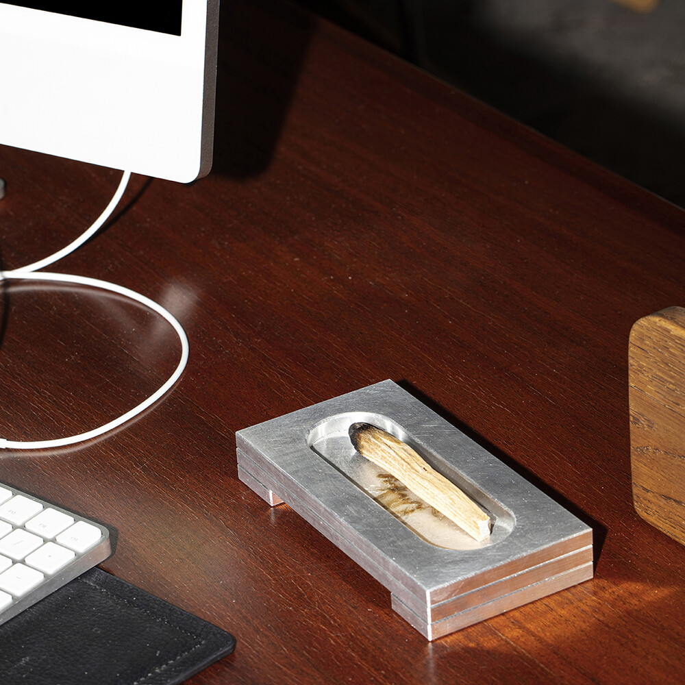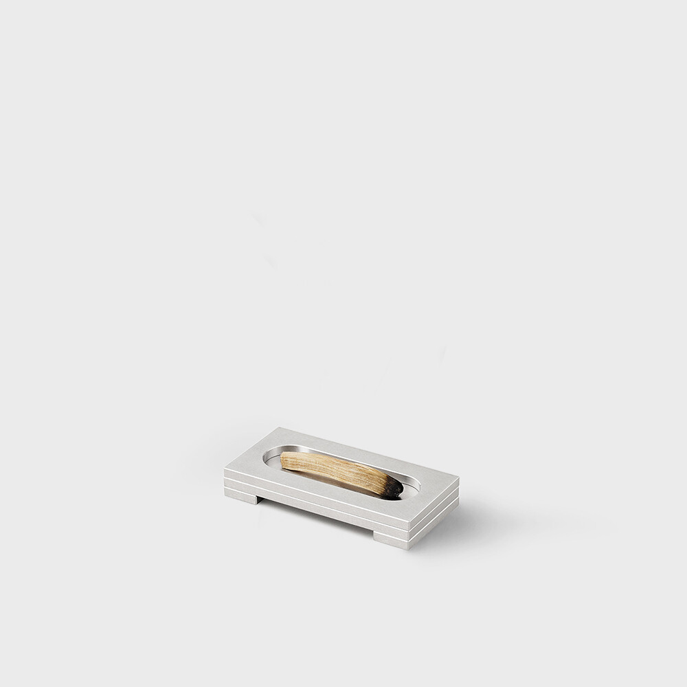 팔로산토(Palo Santo) 스머지 스틱을 올려 두는 어라우즈 트레이는 세심하게 면 처리한 금속 판을 쌓아 나사로 조립하였습니다. 두툼한 알루미늄 판을 여러 개 겹쳐선 재료가 지닌 순수한 힘을 강조했습니다.